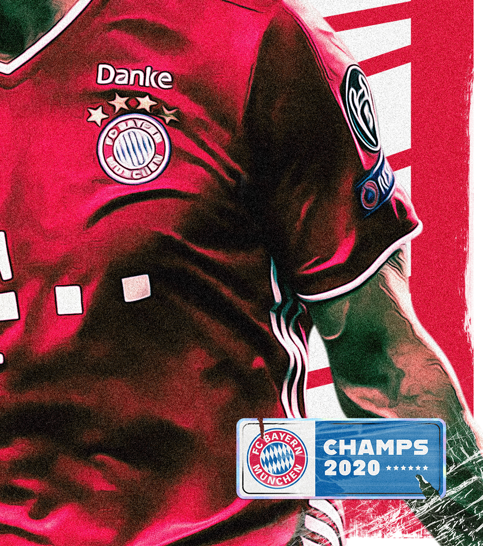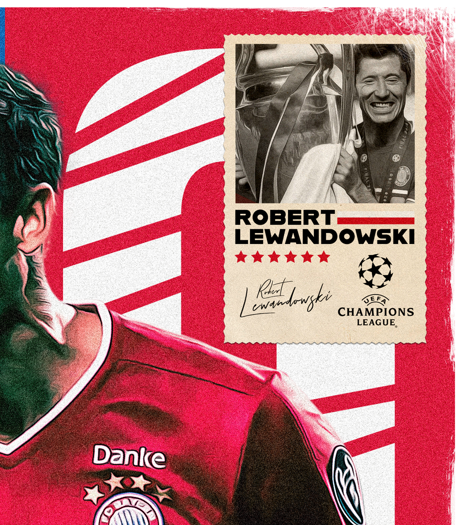 Fan art for Robert Lewandowski, celebrating 2020 UEFA Champions League championship winning and further elected Best Player of the World by FIFA.
